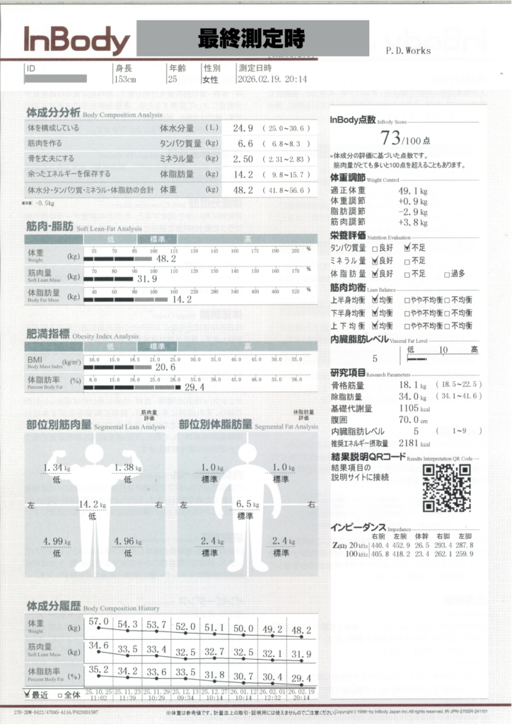 - 体脂肪率: 34.7% → 29.4%(-5.3%)